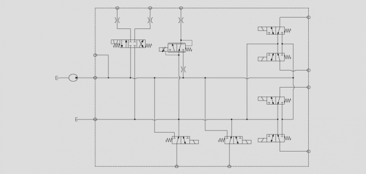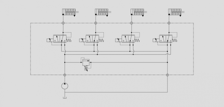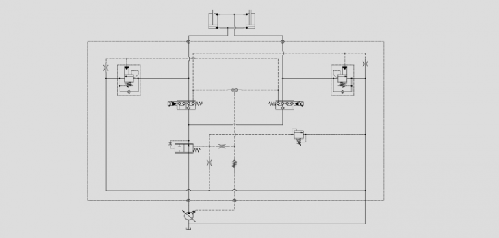 • 利用比例溢流閥和邏輯閥組合,可有效的保證馬達動作的平穩,并節省能耗